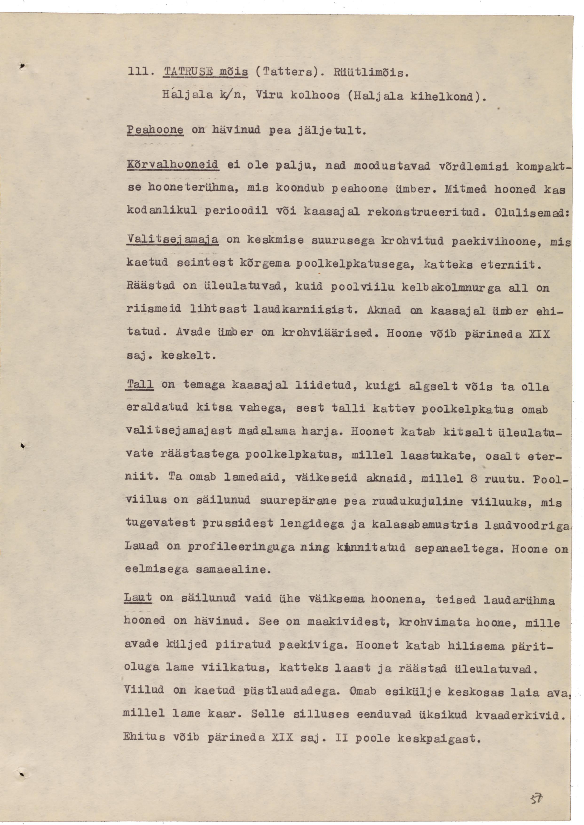 Esmateated mõisast pärinevad 1390. aastast. 18.-19. sajandil kuulus Maydellidele. 1860. aastal müüs Eduard von Maydell mõisa Marie von Luederile. Mõisa viimane võõrandamiseelne omanik oli Alexander von Lueder. [1] XIX sajandil mõisast sai Varangu abimõis ning 1920. a-tel moodustati mõisa maadest Tatruse asundus, mis pärast 1940. aastaid liitus külaga. [2] Mõisa peahoone on hävinenud. Mõisapark on lihtsama ja vabakujulise lahendusega, omab puudega ümbritsetud esiväljaku. Kõrvalhooneid ei ole palju, nad moodustavad võrdlemisi kompaktse hooneterühma, mis koondub peahoone ümber. Nendest olulisemad: valitsejamaja, tall, laut ja rehi-kuivati. Mitmed hooned kas kodanlikul perioodil või kaasajal rekonstrueeritud.[3] Ajaloolise jaotuse järgi Virumaale Haljala kihelkonda kuulunud mõis jääb kaasajal Lääne-Virumaale.